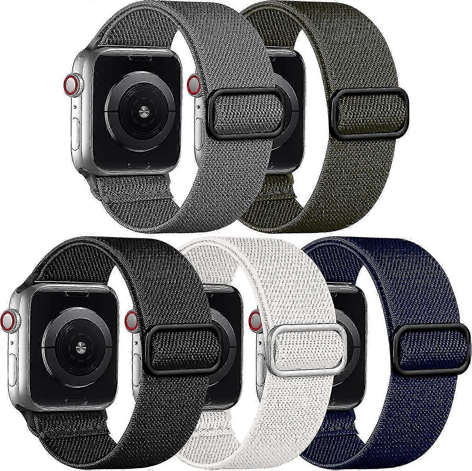 Liangnv 5 Pack Stretchy Solo Loop Bands Compatible With Apple Watch Ultral Band 38mm 40mm 42mm 44mm 41mm 45mm 49mm For Women Men, Soft Nylon Elastic B