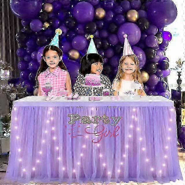 Light Blue Tutu Fluffy Tulle Table Skirt, 4/6/9/14FT, 3Layer Rectangular, 77CM Width, LED Decor