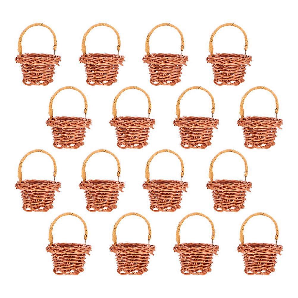 Light Brown Rattan Basket with Handles for Storage 16Pcs Portable Set