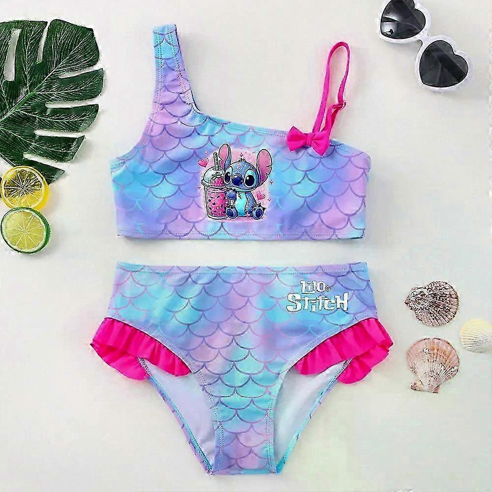 Lilo & Stitch Girls Two-Piece Swimsuit Kids Bathing Suit Mermaid Fish Design Summer Beach Swimwear for Children