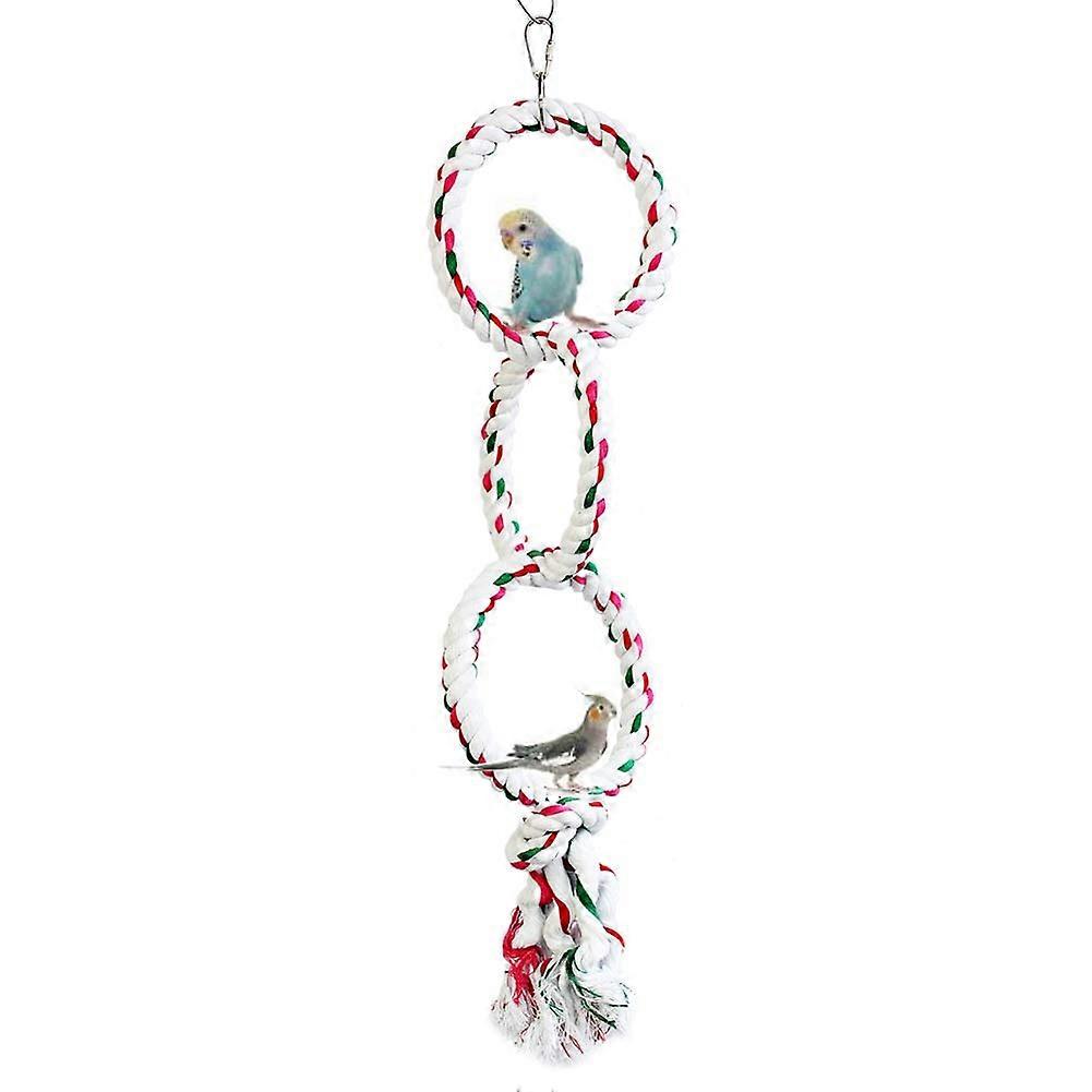 LINJOU Bird Rope Perches Parrot Hanging Perches Chewing Cage Toys Cotton Rope Swing Spiral Perches,3 Loops
