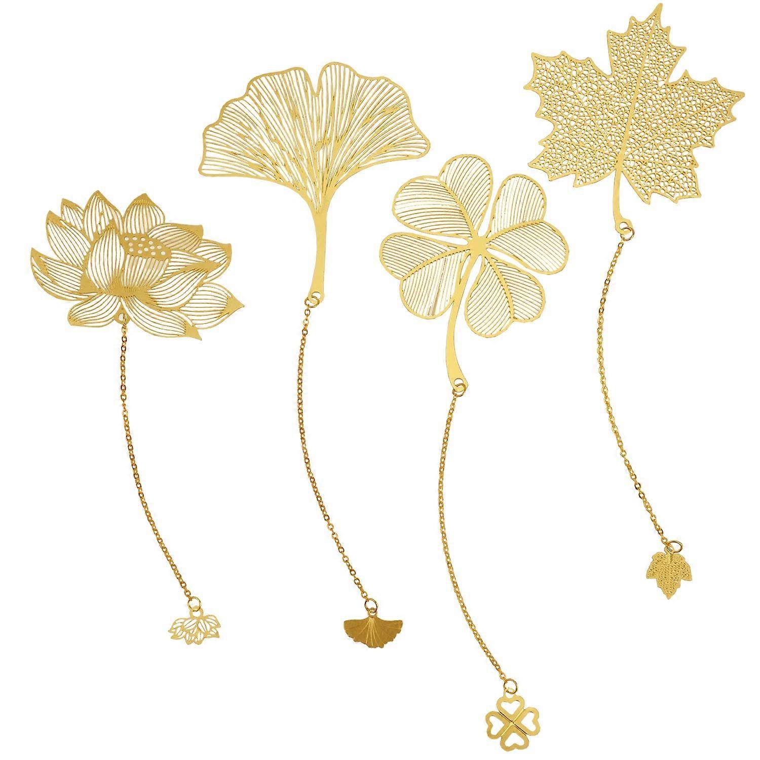 LINJOU 4 Pack Metal Bookmarks with Chain, Gold Cutout Bookmarks for Book Lovers