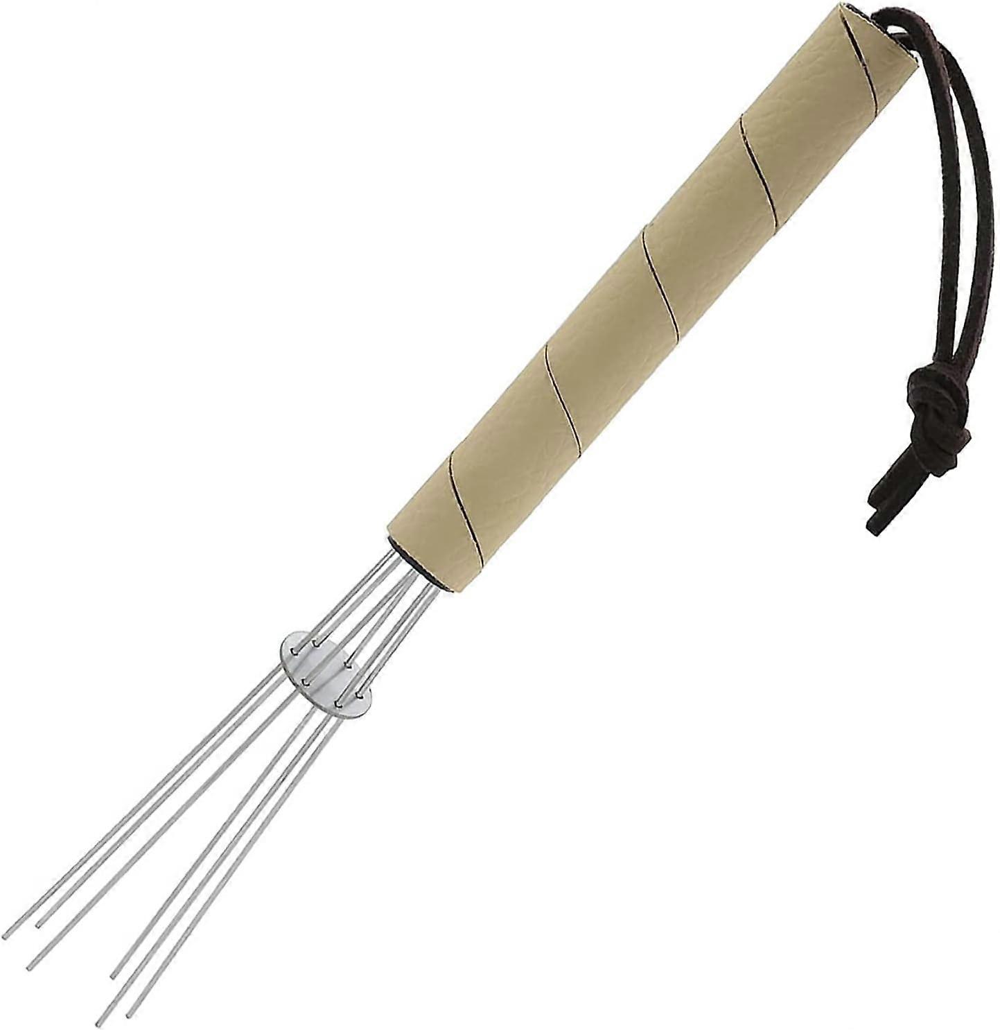 LINJOU Espresso Coffee Stirrer, Leather Handle with Lanyard Needle Type Distributor Hand Tool (Khaki)
