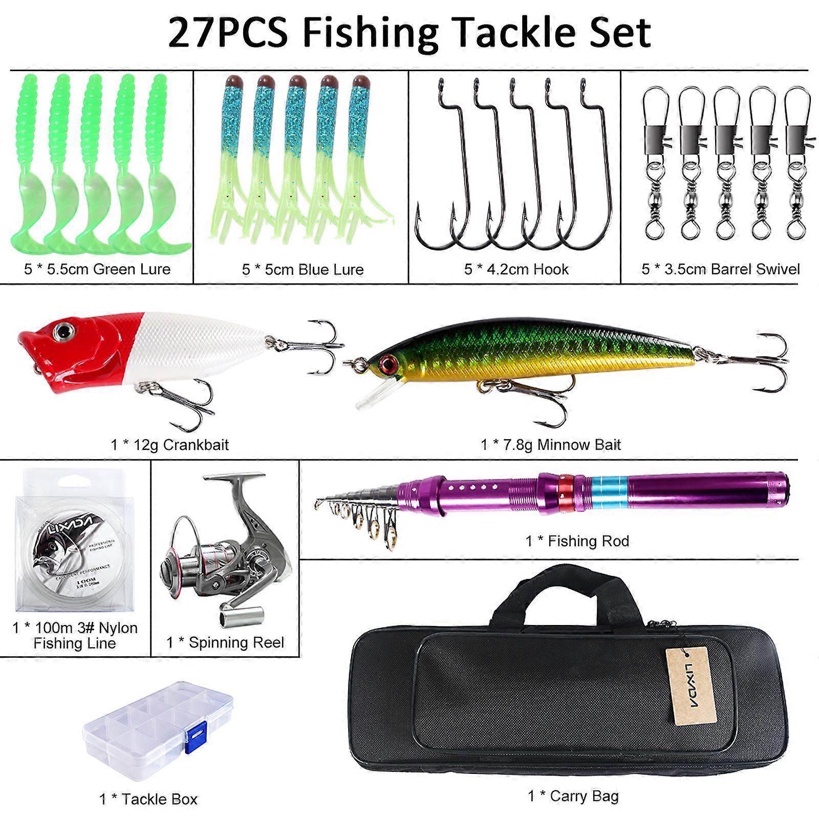 Lixada Fishing Rod and Reel Combo Carbon Fiber Telescopic Fishing Rod with Reel Combo Set Lures Jig Hooks Fishing Carrier Bag