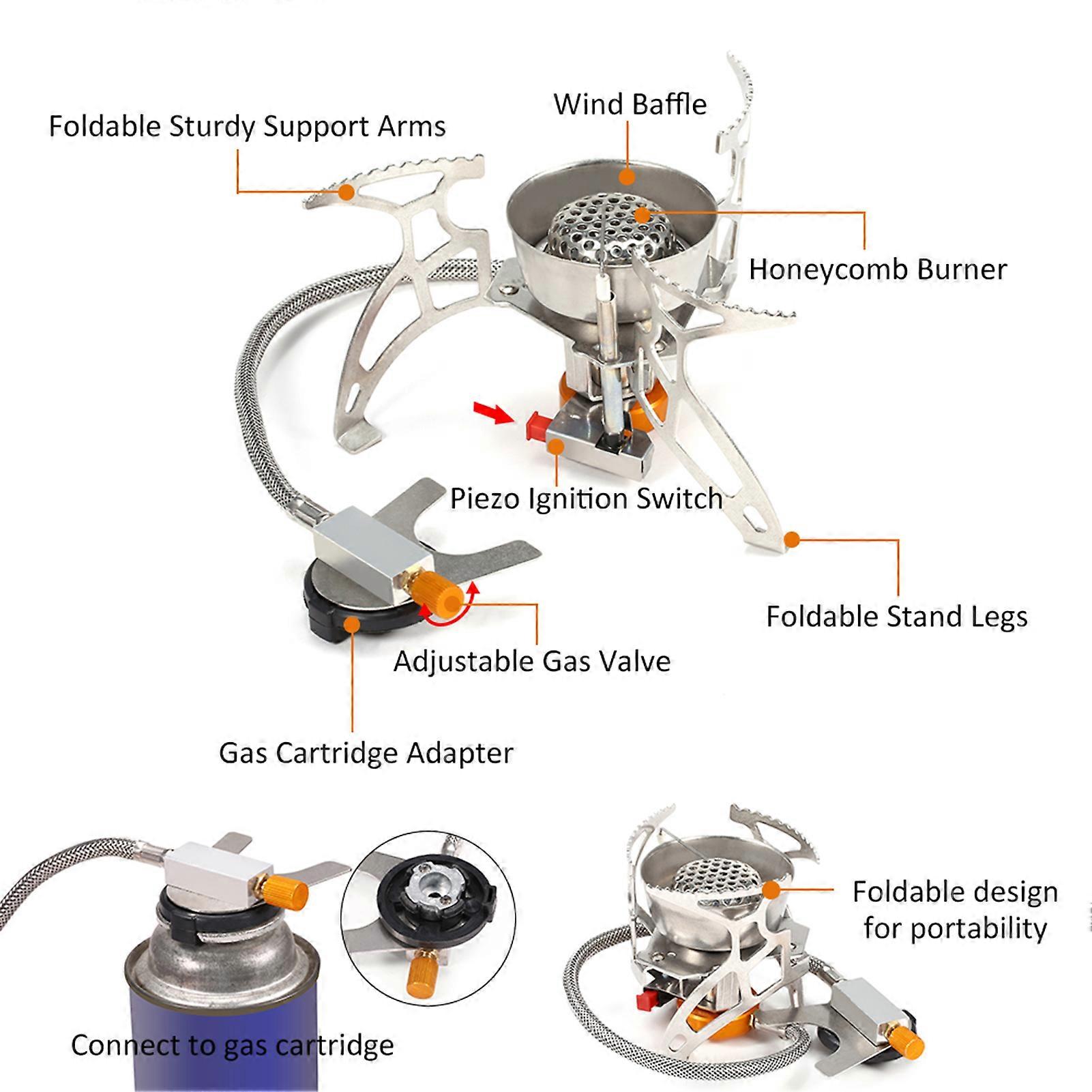 Lixada Foldable Camping Gas Stove Windproof Piezo Ignition Backpacking Stove Outdoor Portable Cooking Stove