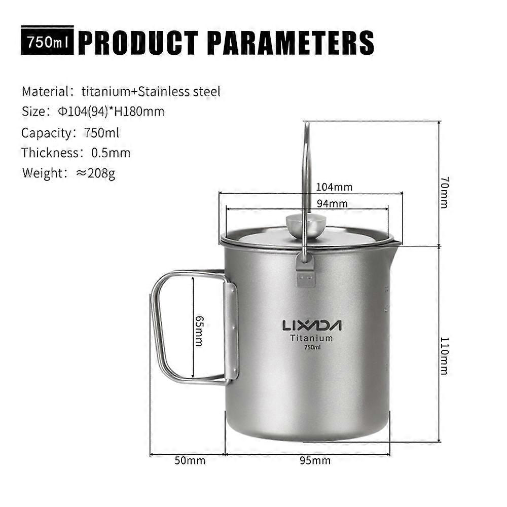 Lixada 750ml Titanium Coffee Cup Mug French Press Pot Coffee Maker Outdoor Camping Cooking Pot with Folding Titanium Spoon