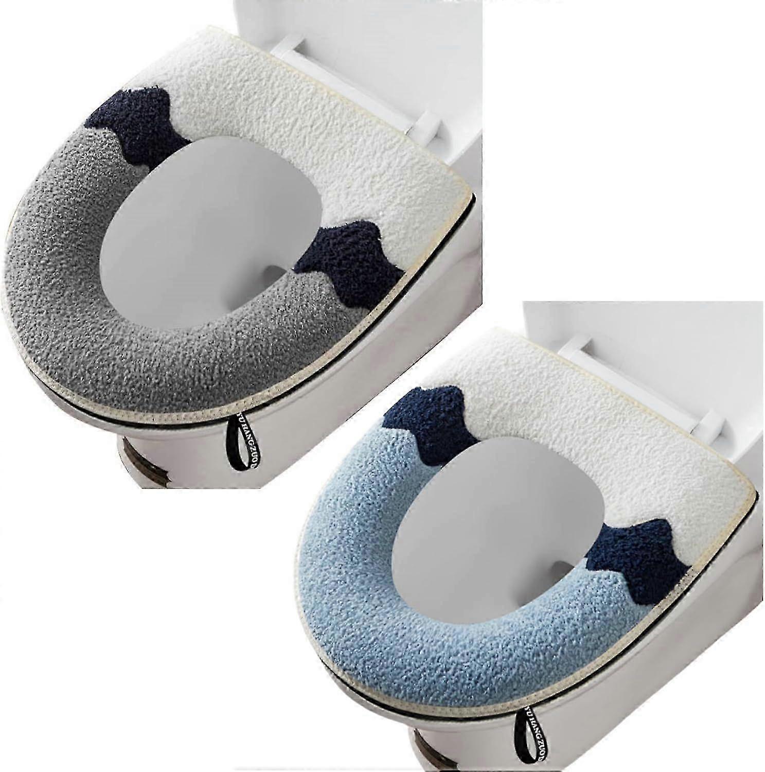 LM 2 Pieces Thicker Bathroom Soft Toilet Seat Cover Pad with Handle Toilet Lid Cover Cushion Soft Thicker Washable Fits All Oval Toilet Seats (GR YDJ