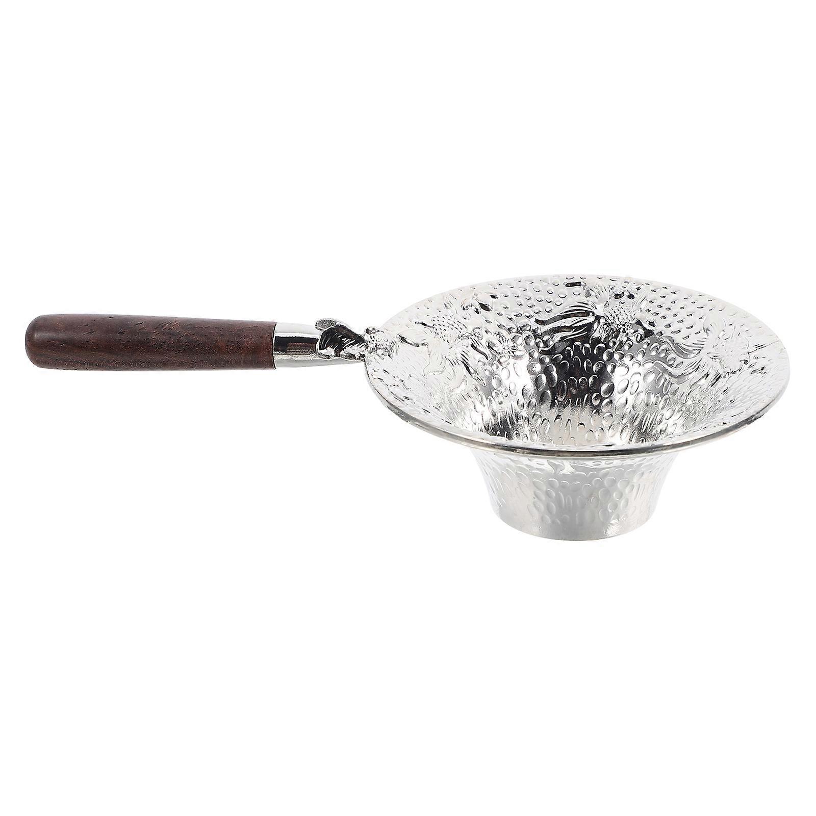 Our Koi Hammered Tea Strainer is more than just a tea accessory; it's a statement piece for your tea collection. The detailed koi fish hammered design adds an artistic flair, while the alloy construction has longevity. Whether you're using it with a teapot or a teacup, this strainer a clear tea, enhancing your overall tea-drinking experience. Features - Color: Silver -Material:Tin Alloy,Beech - Size: 14.30X7.90X3.20cm/5.62X3.10X1.26in -Japanese style tea infuser alloy loose tea tea infusers chinese tea strainer gongfu tea steeper tea leaf infuser filter tea accessories. -The intricate koi fish handle pattern showcases craftsmanship, adding an artistic and unique flair to your tea accessories, making each tea session a visually pleasing experience. -Equipped with a convenient handle, this tea strainer is easy to maneuver and clean, making it for daily tea brewing and enhancing your overall tea preparation process. -This versatile tea strainer is compatible with a wide range of teapots, teacups, and other containers, making it a practical addition to any tea lover's collection. -Featuring a fine mesh filter, this tea strainer effectively captures even the smallest tea leaves, ensuring you enjoy a clear and smooth cup of tea every time. Package list: 1 x Tea Leaf Strainer