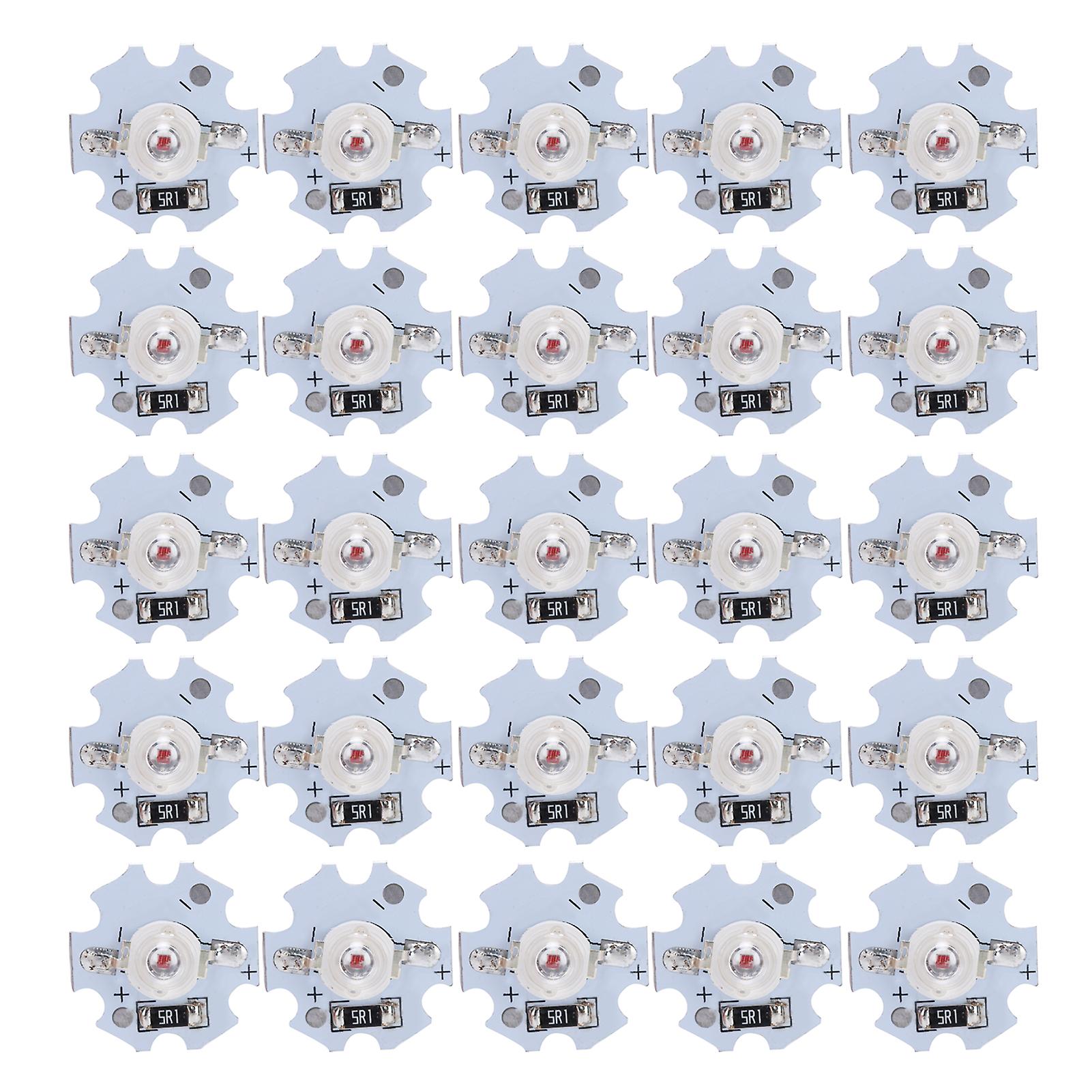 Lot de 25 puces LED 5 V, 200 lm, 3 W, haute puissance, pour luminaires DIY, lumière rouge 620-625 nm