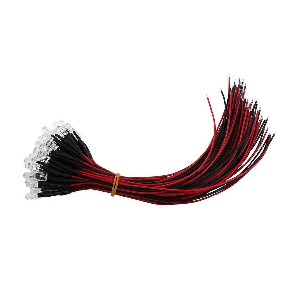 Lot de 50 diodes LED pré-câblées 12 V, lumière blanche, rouge, bleue, 5 mm (#5)