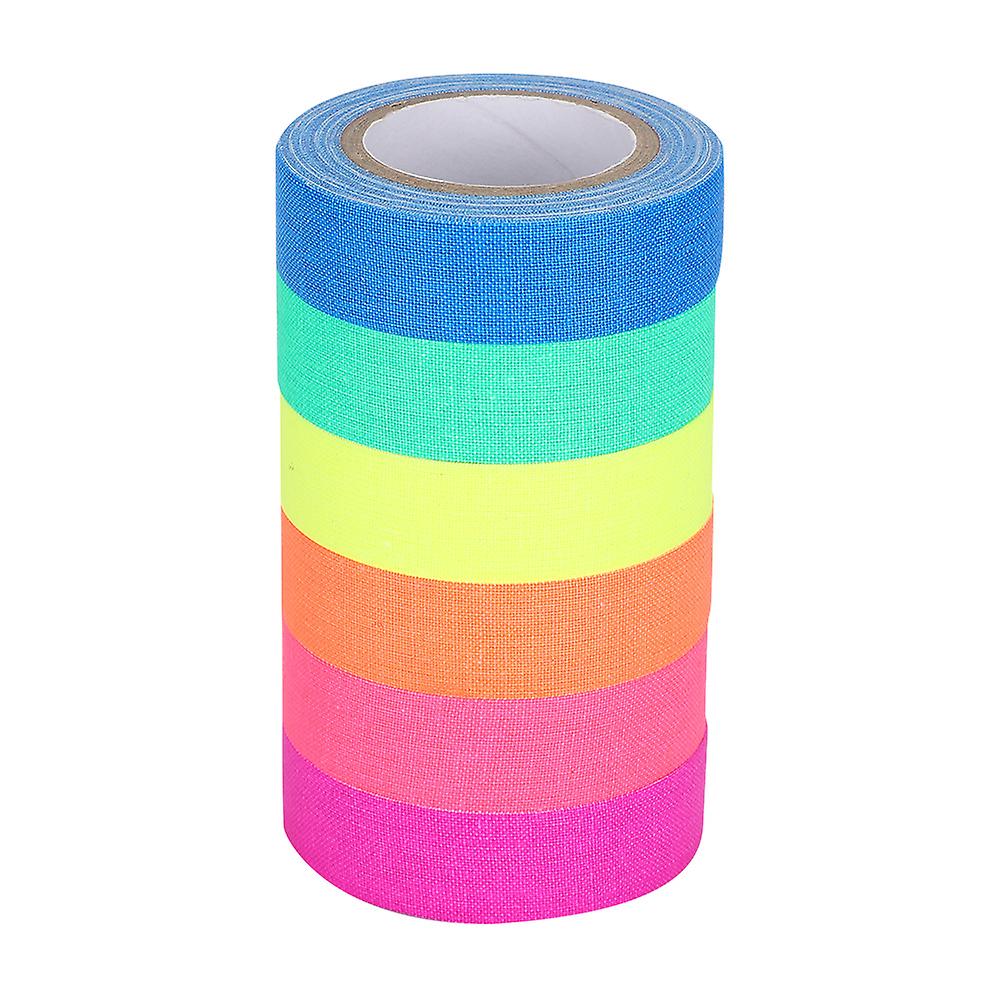 Lot de 6 rubans adhésifs fluorescents en coton, lumineux, mat, haute viscosité, pour décoration nocturne