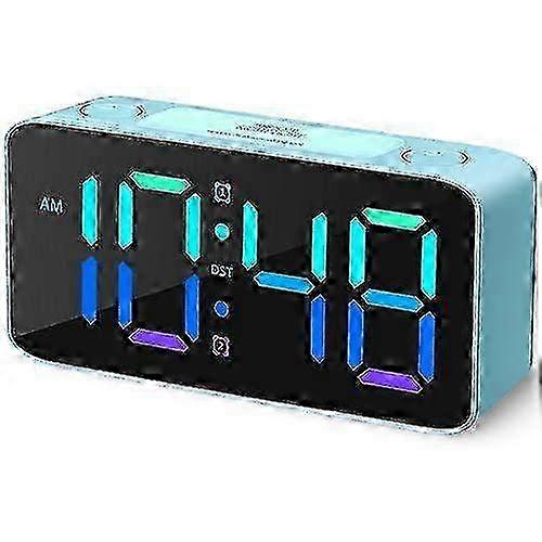 Loud Alarm Clock with RGB Light & Adjustable Volume - Digital Clock with USB Charger in Blue for a Vibrant Wake-Up Experience