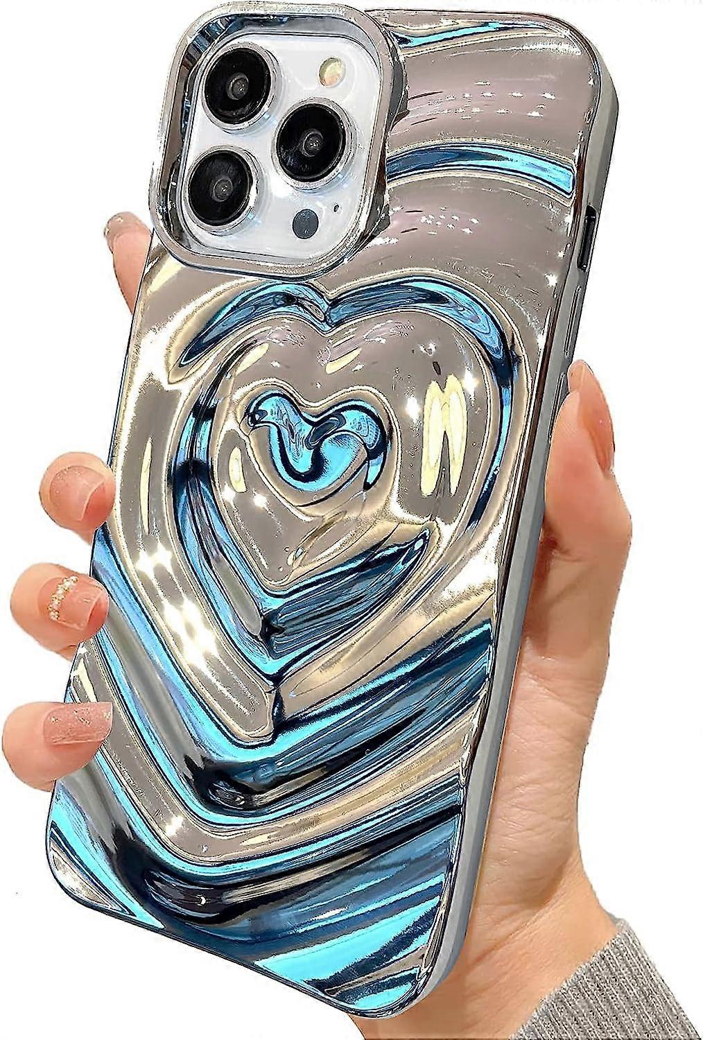 Love Heart Case for iPhone 13 Pro Max Case Plating Case Cute 3D Water Ripple Pattern Curly Wave Shape Soft TPU 13 Pro Max Phone Case Cover-Silver