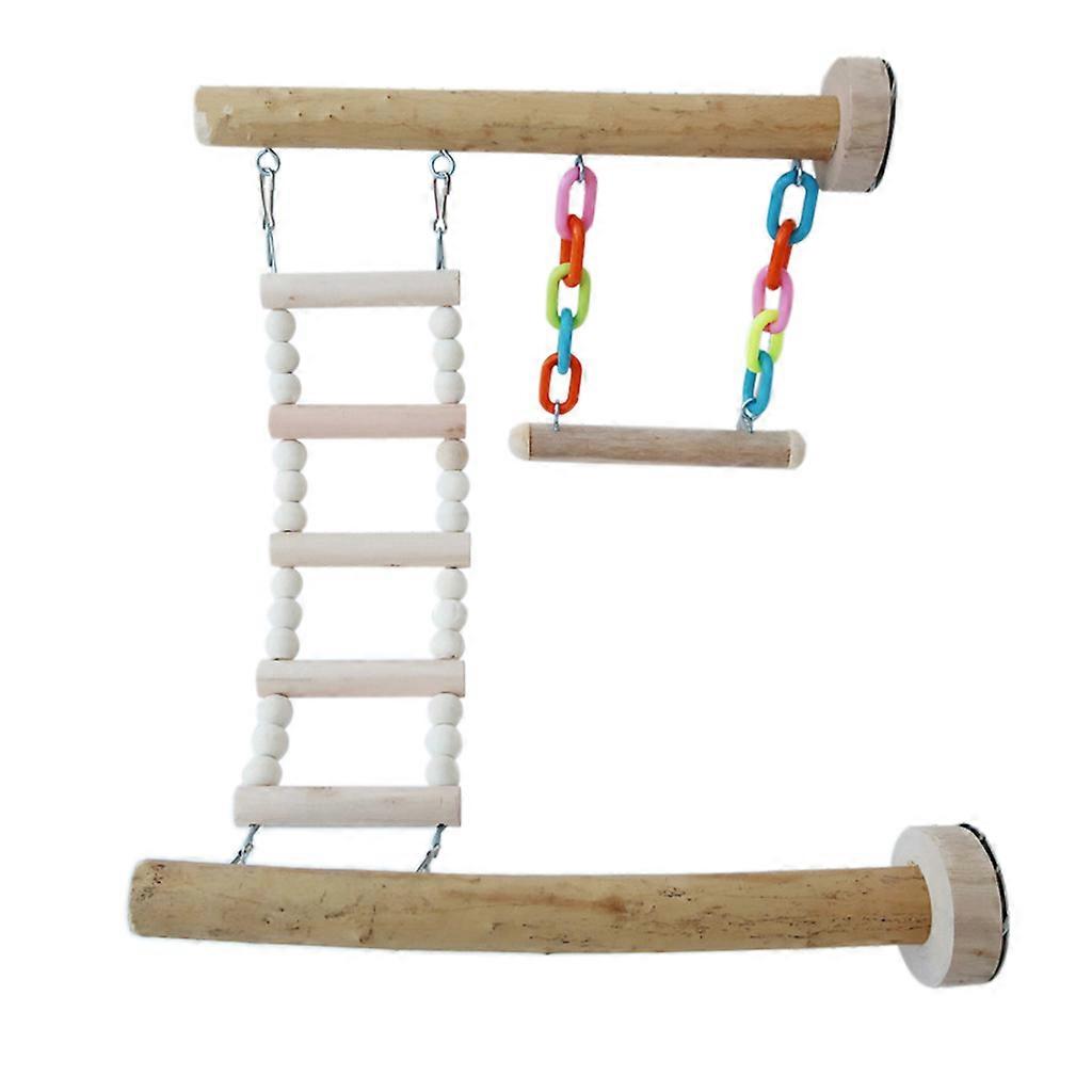 Lovebird Finch Canary Budgie Cage Perch Stand Swing Climbing Wood Bridge