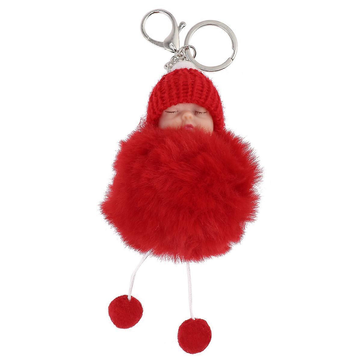 Lovely Key Chain Furry Ball Pendant Suitable For Daily Use And Gift Giving Features A Distinctive Round Shape In Red With 1Pcs