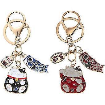 Lucky Cat Keychain: Japanese Beckoning Cat Keyring Fengshui For Tune-Good