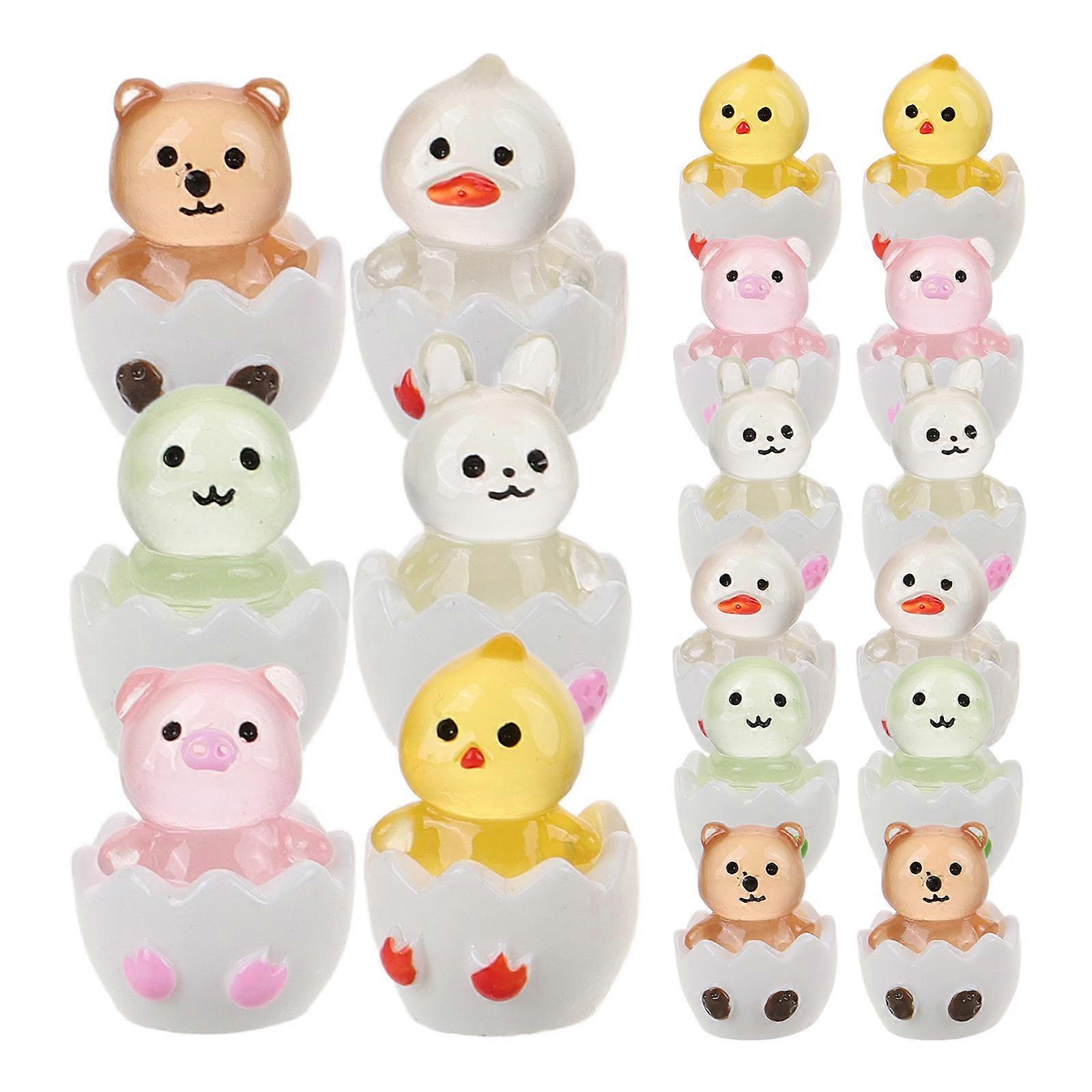 Luminous Mini Figures Assorted Color Resin Miniature Animals Indoor Decoration Simple and Design 18Pcs