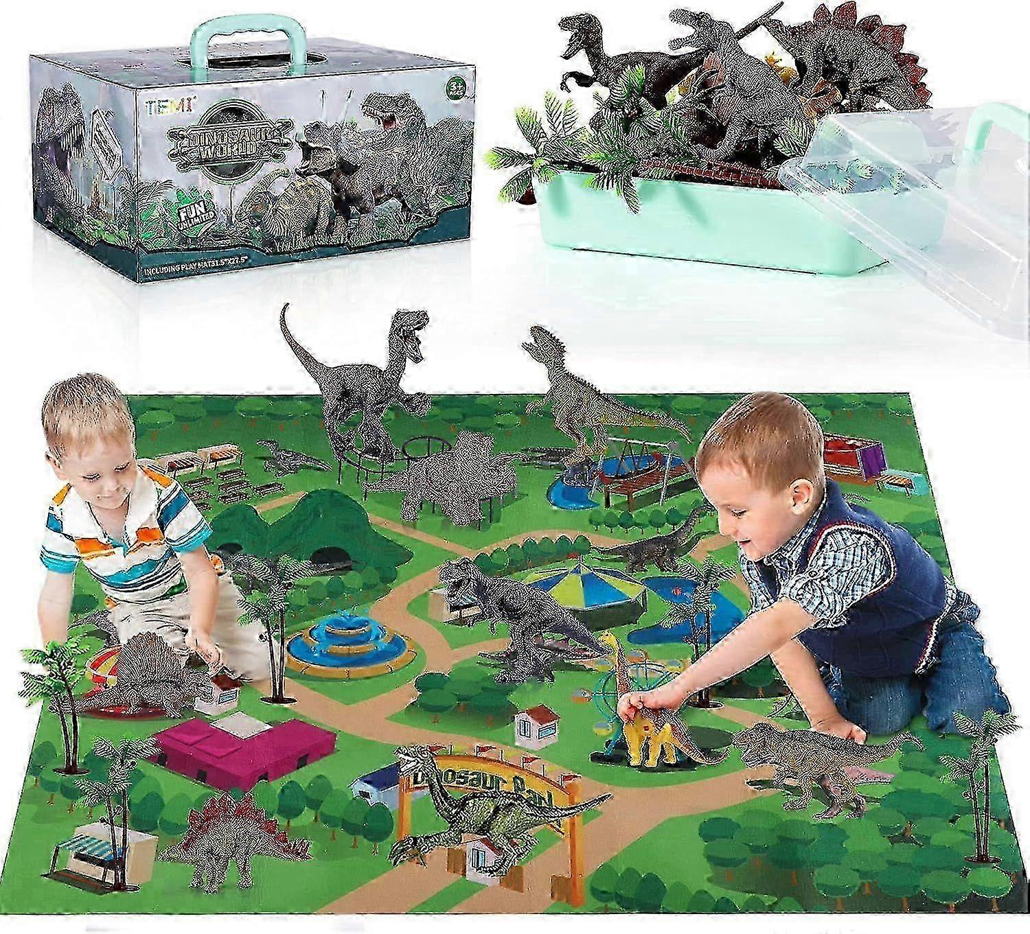 m Dinosaur Toy Figure w/ Activity Play Mat & Trees, Educational Realistic Dinosaur Playset to Create a Dino World Including T-Rex, Trice