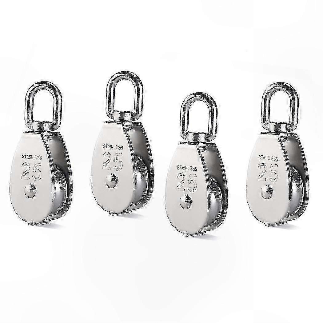 M25 Stainless Steel Pulley Block 4pcs - 304 SS Single Pulley Roller for Heavy-Duty Loading