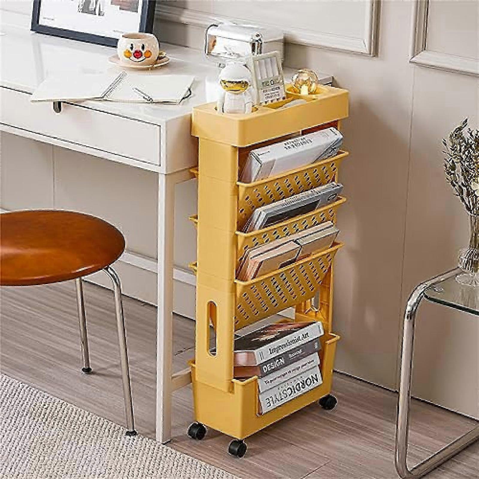 Magazine Rack on Wheels, 5-Tier Book Cart Trolley with Mobile Design for Dorm, Classroom, and Home Use