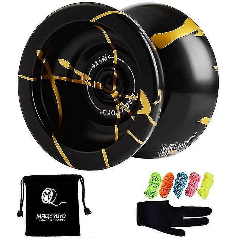 Magicyoyo N11 Alloy Aluminum Professional Yoyo Unresponsive Yoyo Ball (black Golden) Bag, Glove 5 Strings