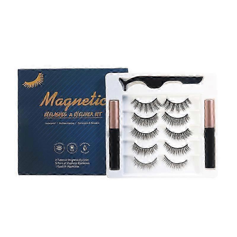Magnetic Eyelashes Set with Eyeliner, 5 Pairs of Lashes and Applicator for Easy Use with Suitable Brand Products