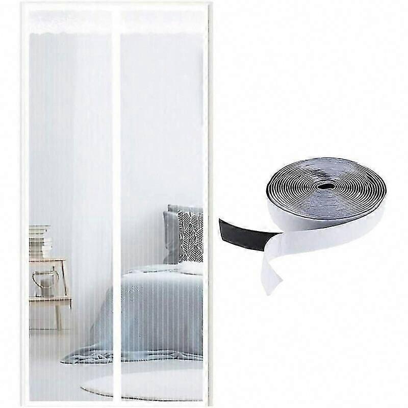 Magnetic Mosquito Net Door with Self-Closing Seal, White Stripes, 100mm - Keep Bugs Out & Fresh Air In
