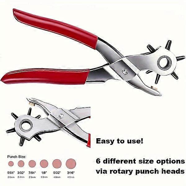 Manual leather punch, 6 sizes, ergonomic handle for comfort