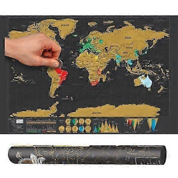 Description In the past, the atlas was the usual way to learn about the geography of the world. Nowadays, as you know, all maps, down to the smallest detail, are just a click away on your computer or phone. But now there is the opportunity to create your very own map, where YOU choose which countries to show. In the same way as with a scratch card, you scratch out the countries you want to show. Maybe you want to brag to the Poles about all the cool countries you have visited Or remind yourself of which countries you want to visit No matter what, this Scratch Map is a cool and stylish wall decoration. Giant scratch map - scratch out the whole world! Scratch out the countries you have visited (or want to travel to)!At the very bottom of the map you can scratch out the flags of all the countries! Size: 42 cm wide and 30 cm highMaterial: Laminated thick paper and gold-colored foilDelivered in an exclusive and protective tube that can be reused liTip! Scrape carefully with e.g. a coin for best results