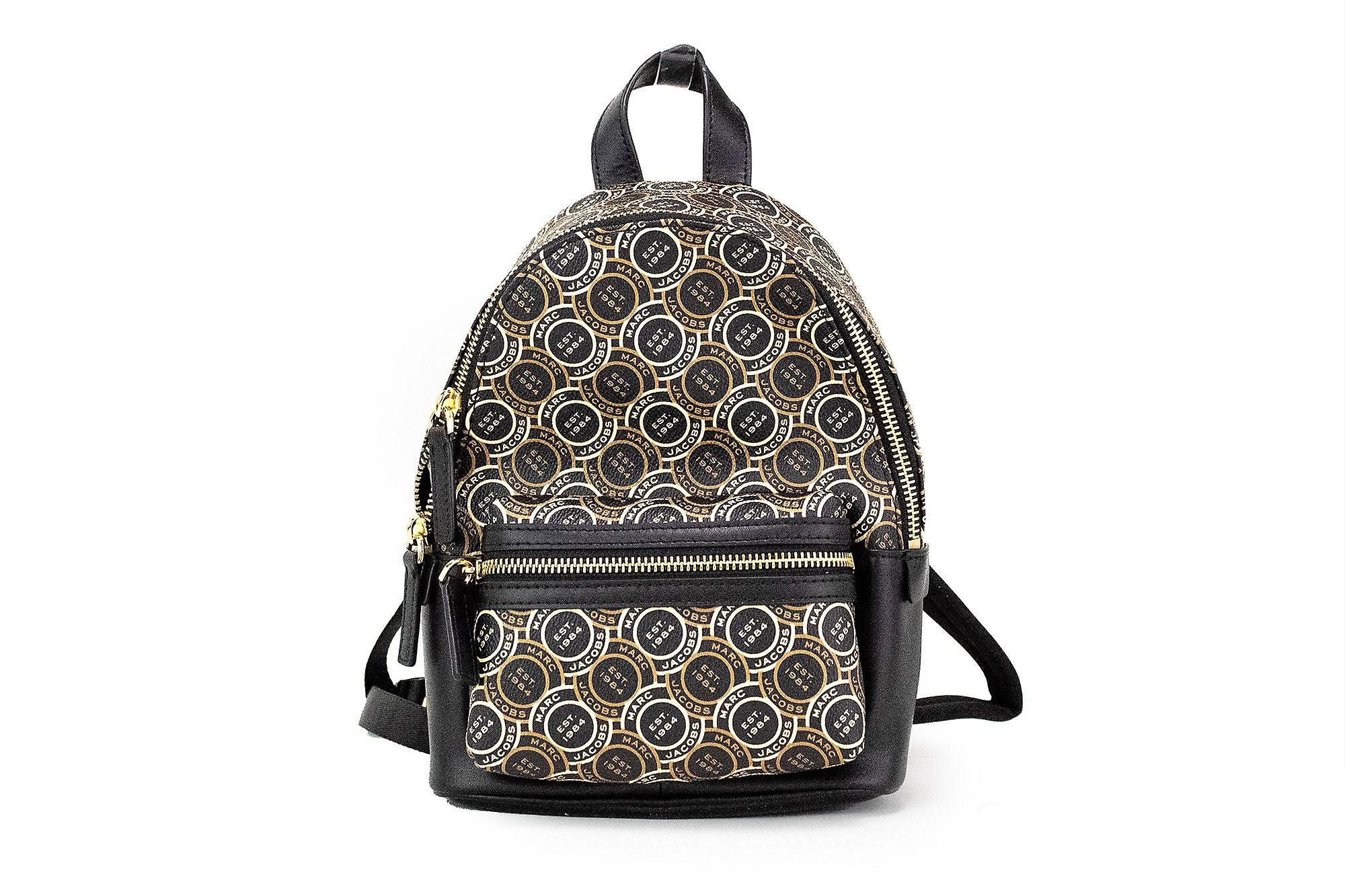 Marc Jacobs Signet Mini Black Logo Printed Leather Shoulder Backpack Bookbag