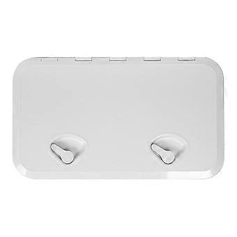 1.24' x 14' Marine Access Hatch and Lid: This low-profile deck hatch is designed for both indoor and outdoor use, providing easy access to additional storage or ventilation on boats, yachts, RVs, and other outdoor settings. Its sleek design blends with flat deck surfaces 2. Construction: Made from heavy-duty ABS plastic, this hatch is built to withstand weather conditions, including cold, heat, vibration, and impact 3.Non-Slip Surface and Recessed Handling: Features a non-slip surface for avoiding accidents and two sturdy recessed handles for easy gripping. The 180 degree hinge allows full range of motion while keeping the hatch flush when closed 4.Precise Dimensions: Overall size: 24' x 14' (606 x 353mm) Opening clearance: 20.6' x 11' (524 x 278mm) Protrusion above deck: 0.7' (17mm) Intrusion below deck: 1' (26mm). Please check the size before purchase