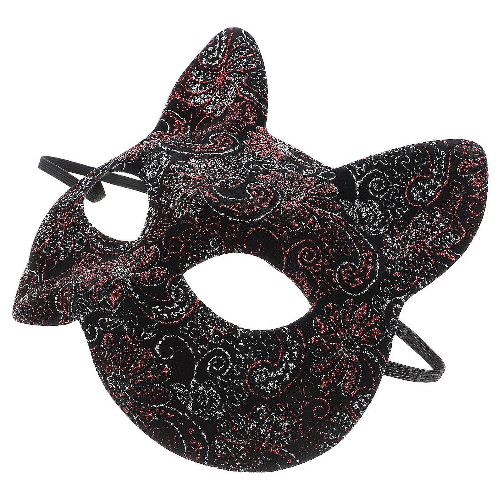 Masquerade Cat Mask with Elastic Band for Costume Party Red PVC
