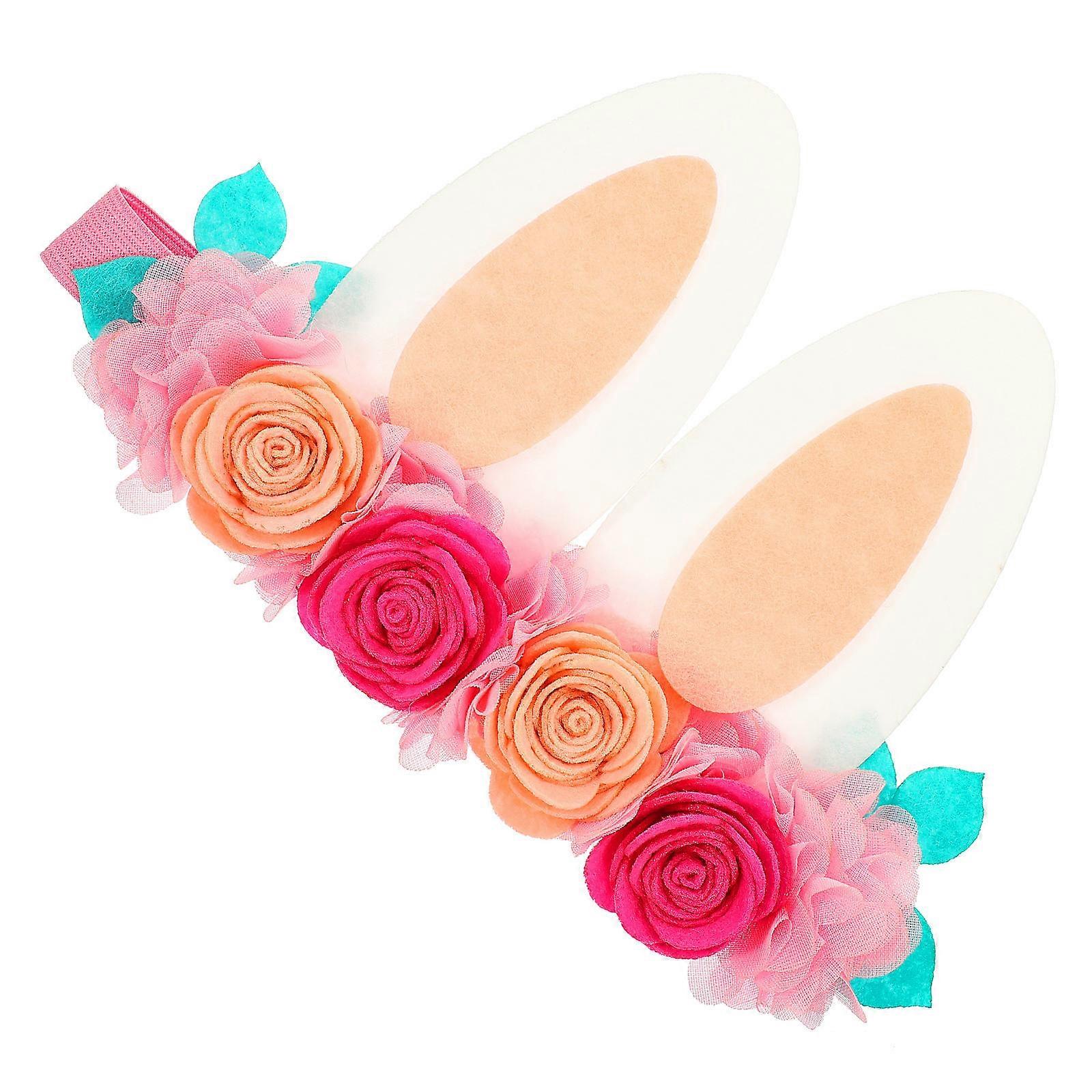Masteelf Kids Easter Rabbit Ear Headband with Beautiful Flower Hair Accessory for Girls Babies 1 Set for Party Photo Performance White
