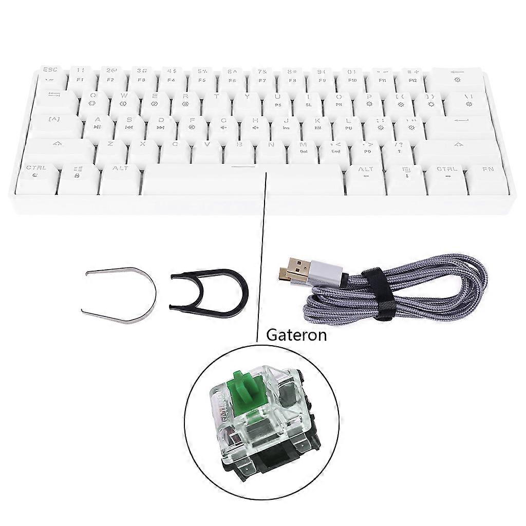 Description: Features: brandnewandhighquality. 1.SK61 is a standard-sized 60% keyboard 2.Hot Swappable Gateron optical Switches Gateron optical switches can be hotswapped at for wish and replaced by other switches. Hot swap keyboard do not recquire you to solder / desolder switches. (Hot Swappable with Optical switches only) 3.Over100milliontimeskeystrokelife,2timeslongerthanthetraditionalmechanical switches 4.ABScase,double-colorABSkeycap,Words will not fade and will be more durable. 5.The for key cap matte treatment for excellent feel 6.3*layerprogrammabledownloadmode(RGBversion).Wonderfulshiningbacklight,16millioncolorRGBlightingeffectstomeetthedemandsofgamers.Customizeyourkeyboard'sbacklightingthroughthesoftware About optical Mechanical Keyboard: They have a high actuation point of 1.5mm for fast response. Light Strike optical switches utilize a horizontal infrared beam which is transmitted across the width of the inner keyswitch. The infrared beam is normally blocked from reaching a sensor across from it by the stem. Once a switch is pressed, the switch stem no longer blocks the infrared beam and the beam is detected by the sensor, which activates the switch. Due to the optical mechanism, an optical switch has an extremely fast response for time of 0.2ms, which means faster reactions in those times where timing is critical, such as when gaming. Drive AP: 1.DIYlighteffect 2.Powerfulgamemacros 3.Therearehundredsoflighteffectsavailablefordownload(continuousupdate) 4.Full-keyprogrammable Specifications: Model: SK61 Item Type: USB Wired Keyboard Material: ABS Color: White Axis Body Type: Blue/Red/Black/Brown (Optional) Backlight Type: RGB Light Keys: 61 keys Connection: Wired Interface: USB 3.1 Type C USB-C Cable Length (for m): 1.5m/4.921ft (Approx.) Keyboard Lifespan (times): more than 100 million Power Supply: USB Port Quantity: 1 Set (other accessories demo in the picture is not included) Note: 1.Transition: 1cm=10mm=0.39inch 2.Please allow 0-1cm error due to manual measurement. pls make sure you do not mind before you bid. 3.Due to the difference between different monitors, the picture may not reflect the actual color of the item. Thank you! Package includes: 1 Set X Wired Mechanical Keyboard