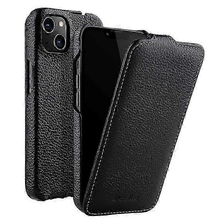 MELKCO Compatible For iPhone 13 Genuine Cow Leather+PC Phone Case Vertical Flip Ultra-Thin Protective Cover