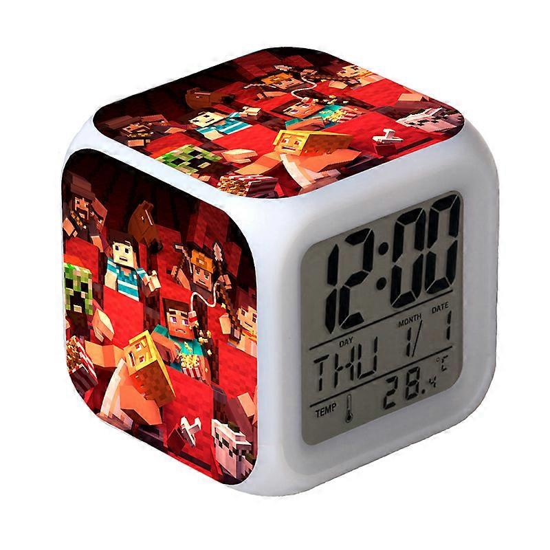 Minecraft Colorful Alarm Clock with LED Color-Changing Lights, Cartoon Anime Clock, Student Silent Night Light Clock