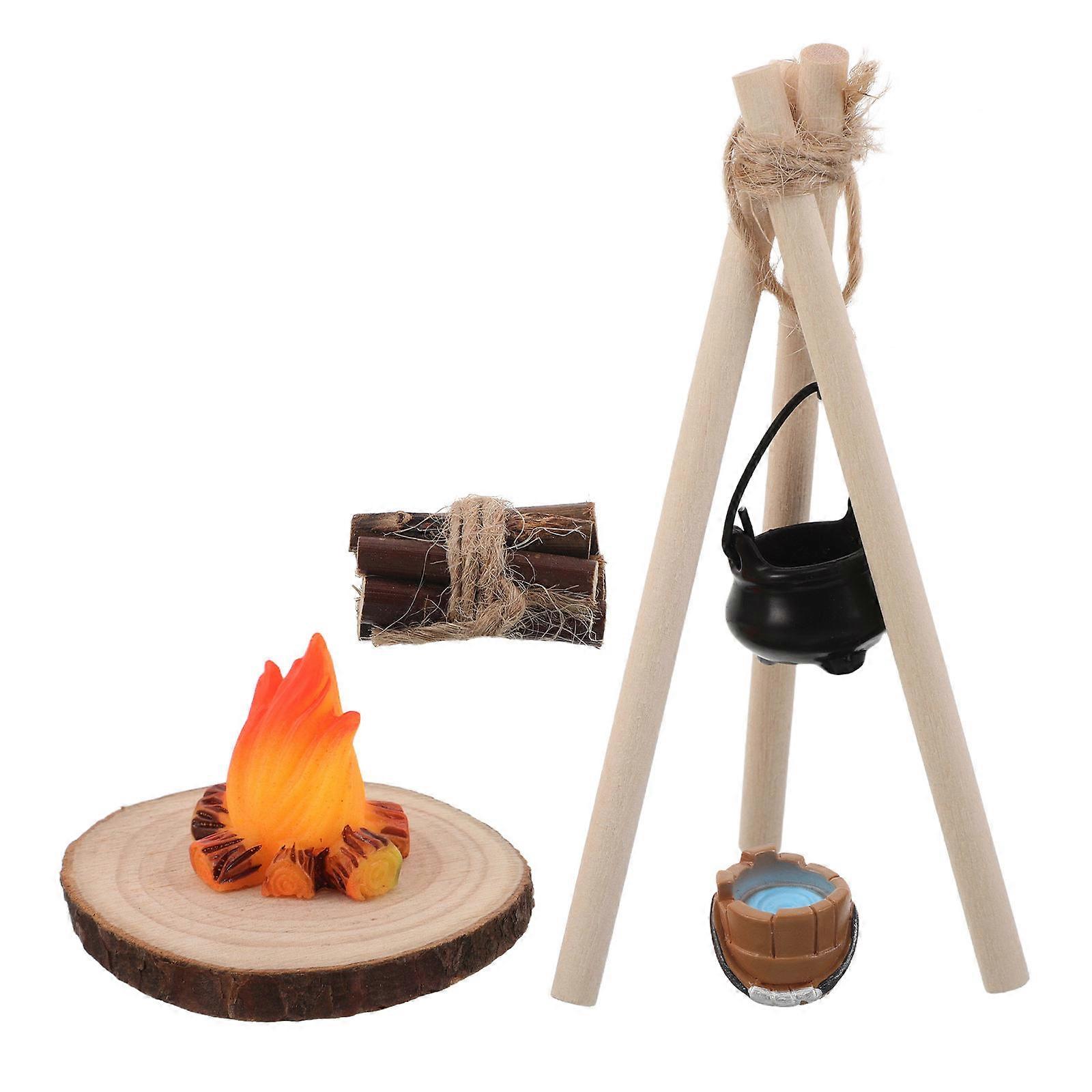 Mini Bonfire Pit Artificial Fire Flame Decoration 1Set with Hanging Pot