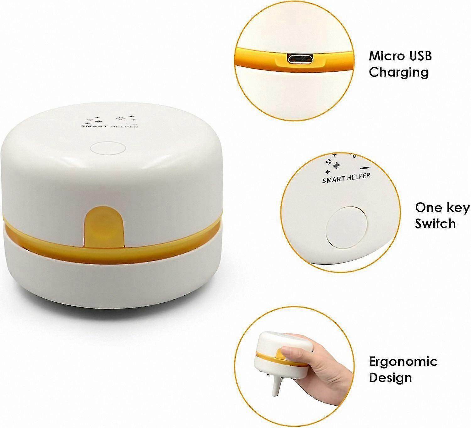 Mini Desktop Vacuum Cleaner with 360 Rotation, Cordless Design, USB Rechargeable, Compact for Home and Office Use (White)