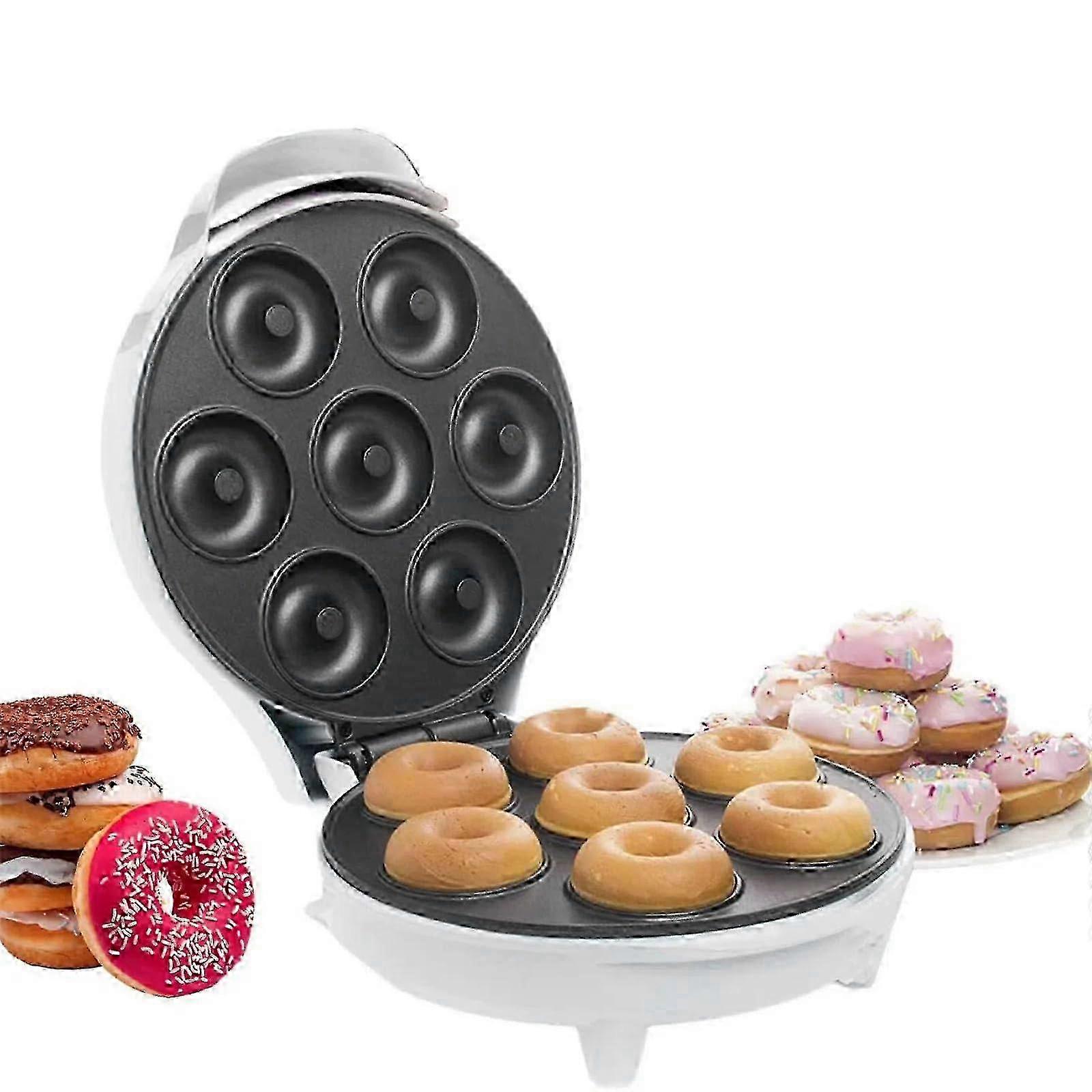 Mini Donut Maker Machine for Kids - Electric Non-Stick 7 Mini Doughnuts Breakfast Maker - White, Easy to Use, Compact Design