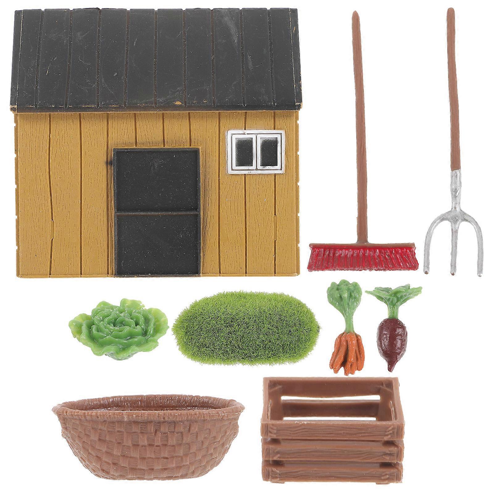 Mini House Farm Plastic Miniature Model for Decor 4Sets