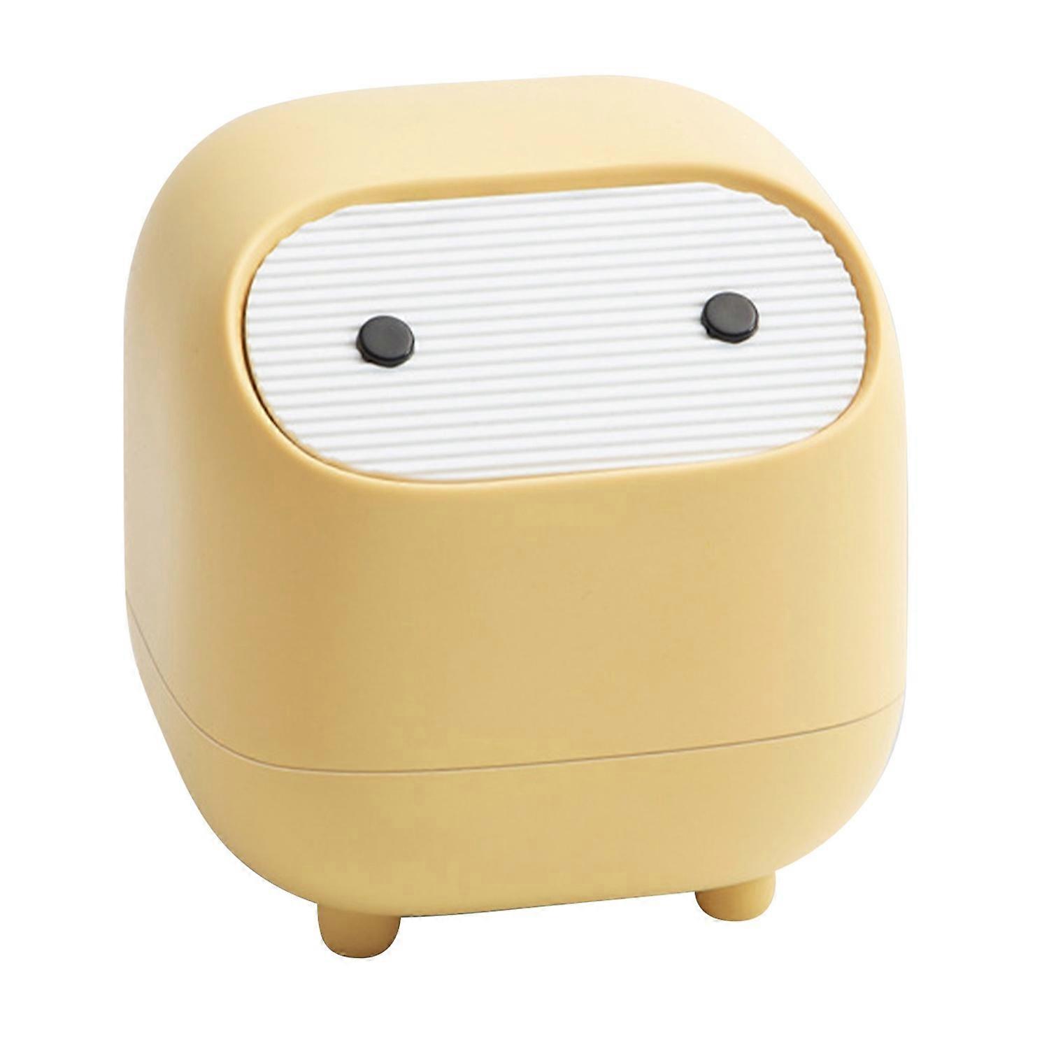 Mini Trash Can 2 Layer Press Type Plastic Countertop Garbage Can with Lid for Table Bedside Desk Yel
