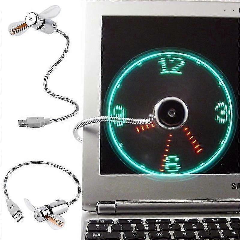 Mini USB Desk Fan with Flexible Gooseneck & LED Clock Cool Gadget for Laptops