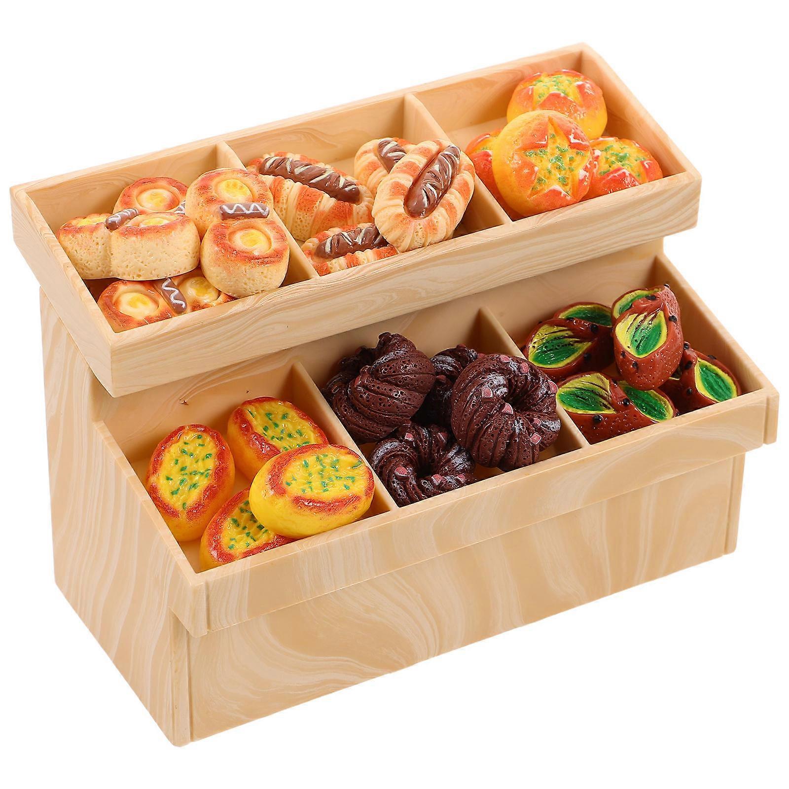 Miniature Bread Cabinet Simulation with Simulated Bread Adornments 4Sets for Decor
