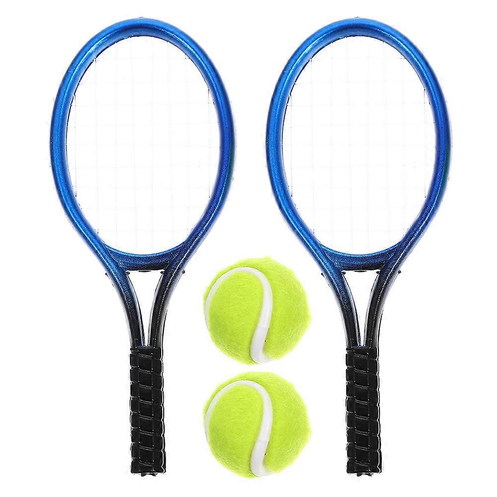 Miniature Tennis Racket and Ball Set for Display 1Set Blue Plastic Model
