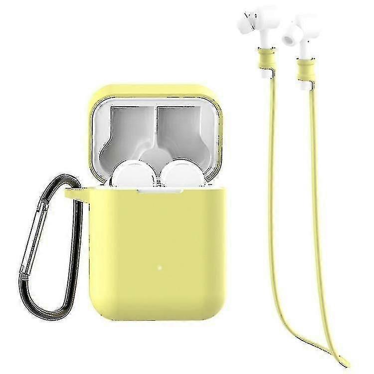Miniowl-for Xiaomi Air 3 In 1 Earphone Silicone Protective Case + Anti-lost Rope + Hook Set(light Yellow)
