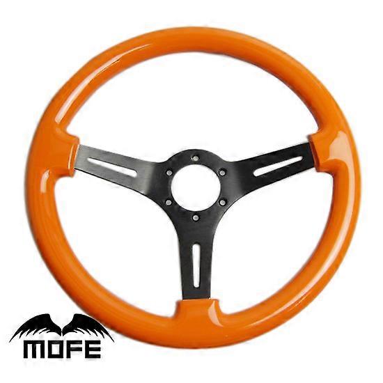 MOFE Racing Real Wood Steering wheel Aluminum Black Spokes 53mm Deep Dish Wood Classic 350mm Steering Wheel Orange