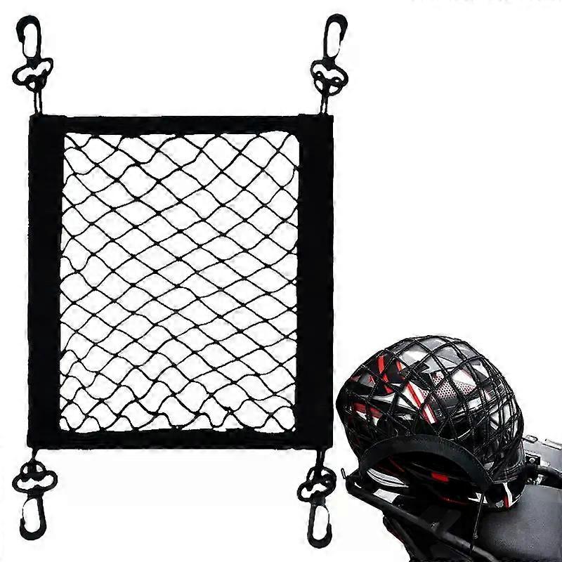 Motorcycle Cargo Net Polyester High Elastic Cargo Net with 4 Adjustable Hooks 360 Degree Rotatable Motorcycle Net Supplies