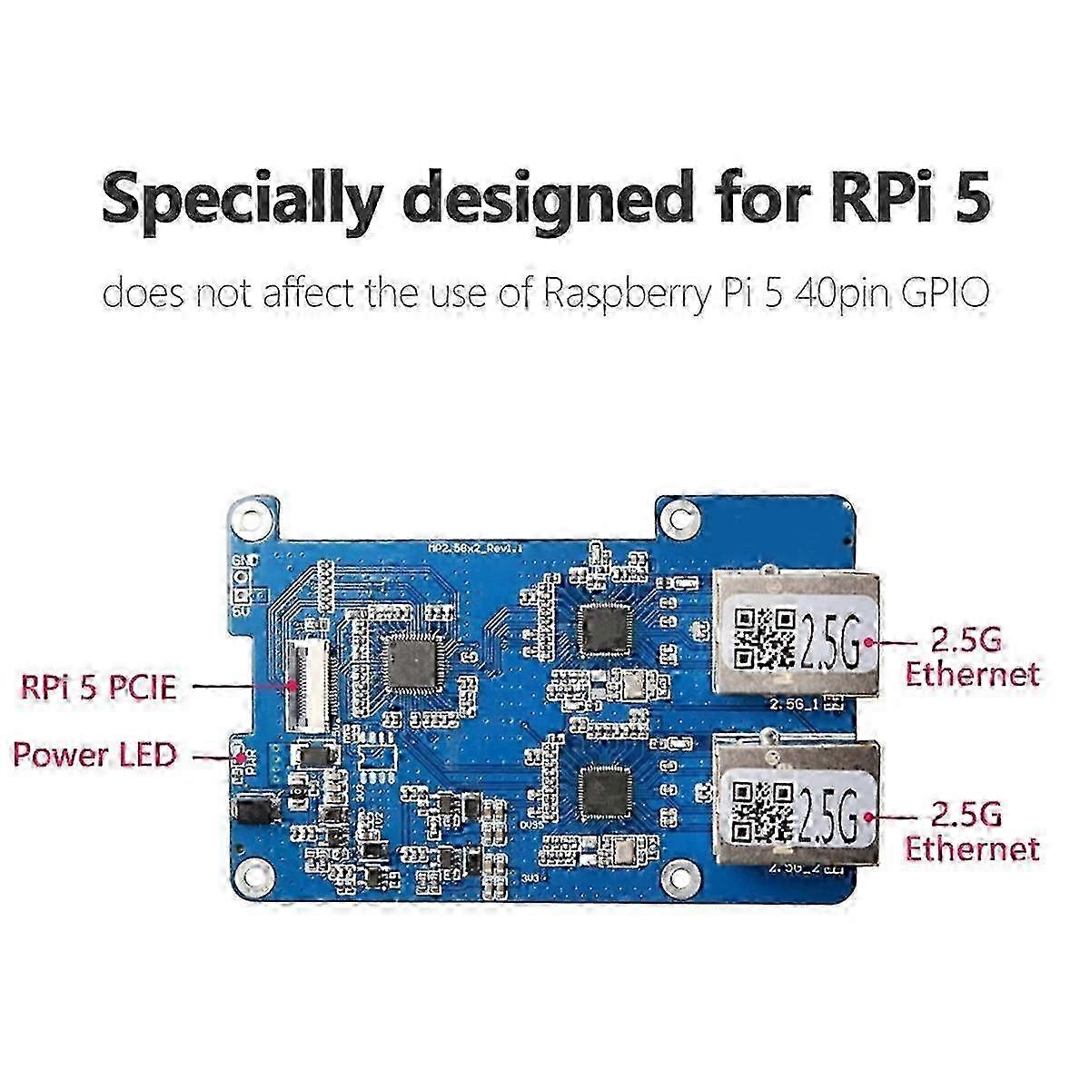 MP2.5GD for Rasbperry Pi 5 PCIE to Dual 2.5G Ethernet HAT RTL8125 Expansion Board Support for RPi OS and miao7