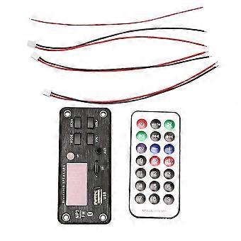Double decoding supports music in MP3/WMA/WAV/FLAC/APE lossless format. Support Bluetooth function, Bluetooth version 5.0. Support recording function. The power amplifier is 2*25W, and 2 25W speakers can be connected at the same time. 12V power supply (voltage range 7V-18V). Color screen digital screen display. Support USB interface (U disk). Power-off memory function. Support infrared remote control operation at a distance of 10 meters. Support external audio source input LINE IN. Support radio FM, radio frequency band (87.5MHZ-108.0MHZ). Buttons: Four-button multi-directional control, VOL-/ SCAN / VOL+ / MODE. Recording function description: Long press the MODE button to start recording, long press the MODE button again to cancel the recording and play the recording file. It is more necessary to connect a storage device when recording, for example: U disk or TF card. Colour: black Material: ABS Size: 92x41MM Package Contents: 1 * MP3 decoder board 1 * Remote control (not including CR2025 battery) 1 * Cable Only the above package content, other products are not included. Note: Light and different displays may cause the color of the item in the picture a little different from the real thing. The measurement allowed error is +/- 1-3cm.