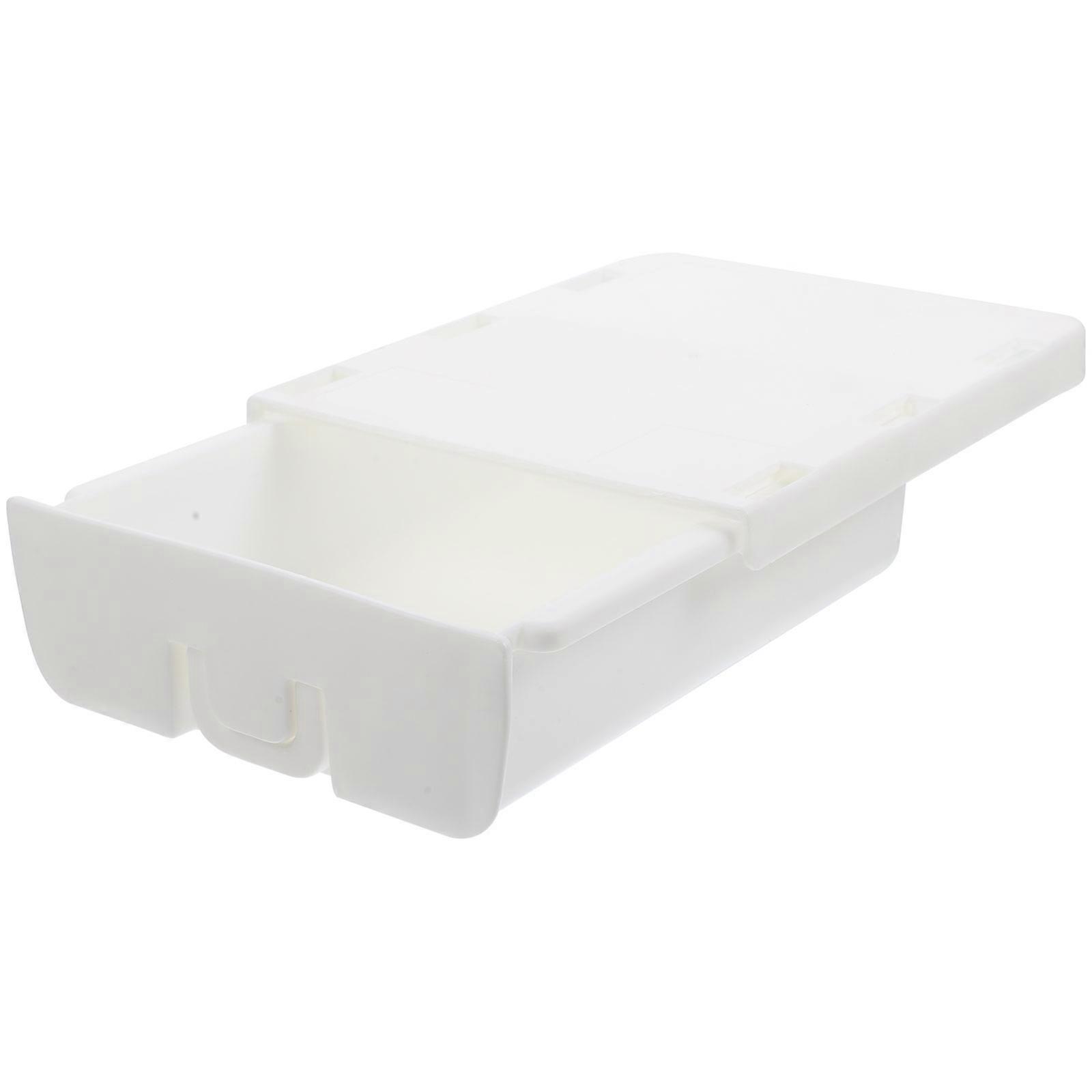 This Under Desk Organizer, made of plastic material, is practical for long time use. Under Desk Organizer is a practical box for stationery, cosmetics, remote-controller, cellphone etc. Make use of your desktop space artfully. Perfect for office, kitchen, school, study room, dressing room, bedroom etc, keep your work and desktop items in order. Features -Color:White -Material:plastic -Size:22.80X18.00X6.10cm/8.96X7.07X2.40in - Manufactured with plastic, the organizer is strong and durable. Easy to open and close. - Convenient and space-saving. Make your desktop be tidier. Rejecting messy, giving you a better studying and working environment. - This is installed under the table using adhesive tapes. Retain a certain degree of privacy to protect your storage items. - This is a practical box for stationery, cosmetics, cellphone etc. Suitable for any kind of table, such as laptop table, study desk, dining table, computer table, wardrobe, etc. - Great for bedroom, kitchen, dressing room, office etc. More functions are waiting for you to discover. Package list: 1 x Under Desk Drawer